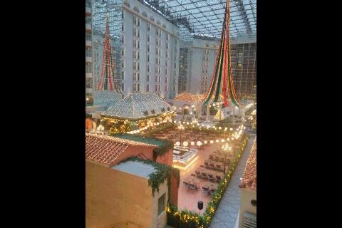 朝食とクリスマスのホテルの様子です。