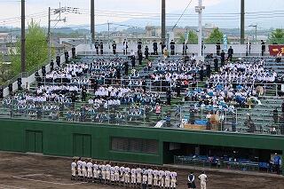 第69回都城泉ヶ丘高校対都城西高校の野球定期戦が4月26日(金)に開催されました。今回は平成最後ということもあり、両校とも気迫あるプレー、そして、応援が繰り広げられました。結果は8対5で都城西高校が昨年度に続き、勝利を手にしました。通算成績は昭和41年第1回から数えて32勝30敗7分となりました。来年度以降、令和の時代にはどのようなドラマが繰り広げられるのか、楽しみです。