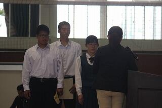 まず、本校の取り組みであるボキャブラリーコンテスト(英単語コンテスト)の表彰がありました。