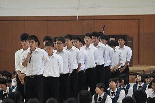 1学年は、1-4組 恒吉 羽月さん 2学年は、2-1組 阿久根 琳々さん、3学年は、3-4組 山菅 元太さんがそれぞれ、学年代表として、日々の思いを堂々と発表をしました。