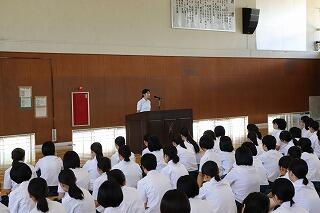 5月23日に防災教育が行われました。講師である、宮崎県庁危機管理課の長尾拓さんから『身近な地震「日向灘地震」に備える』という演題で講話をいただきました。先日、都城市も震度5弱の地震を観測したところですが、都西生徒、職員全員が災害時に備え、どのような行動をとるべきかを考える機会となりました。