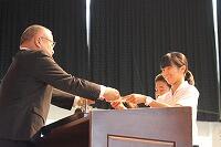写真は(左)吹奏楽部(右)選手代表宣誓をする野球部 石川淳(末吉中出身)