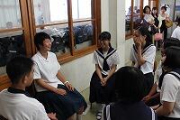 全体会の後は、教室で「先輩との学習会」や「先輩との交流会・部活動紹介」がありました。
