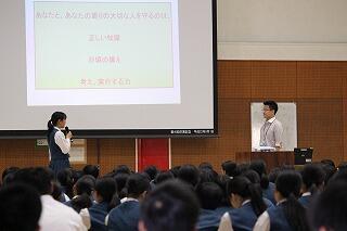 5月23日に防災教育が行われました。講師である、宮崎県庁危機管理課の長尾拓さんから『身近な地震「日向灘地震」に備える』という演題で講話をいただきました。先日、都城市も震度5弱の地震を観測したところですが、都西生徒、職員全員が災害時に備え、どのような行動をとるべきかを考える機会となりました。