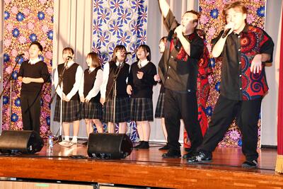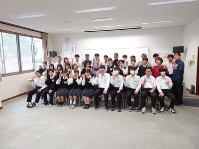 今回はゴスペルの鑑賞でした。福岡在住の6人組コーラスグループTEAM SURPRISE ーチームサプライズー による公演を楽しみました。前日から入念に準備をしていただいて、迫力ある、そして美しい歌声を聴くことができました。途中、ゴスペルをレクチャーしてもらいながら生徒が一緒に歌う場面もありました。あっという間の2時間でした。最後は全校生徒と一緒に集合写真を撮り、いい思い出になりました。TEAM SURPRISEの皆さん本日は芸術に触れる貴重な時間を提供していただき、ありがとうございました。