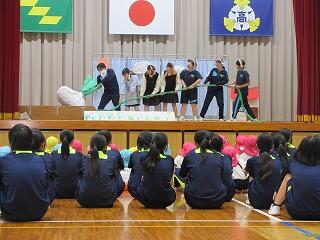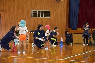 大学の先生や大学生にアドバイスをもらいながら企画したゲームや運動遊び、ダンスなどで、楽しい時間を過ごしました。