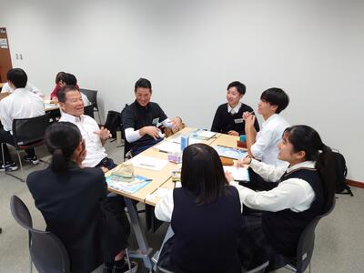 グループごとに自己紹介を行った後、どんな都城市になるといいか高校生らしい視点で堂々と意見を述べていました。