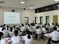 5/8.9の2日間、1年生は講師の先生を招き、総合的な探究の時間を使って都城についてグループで考えました。都城の良いところを考えたり、またその良いところを維持するため、管理するためにどんな人がいるだろう、どんな取り組みがあるのだろうということを考えました。自分の住んでいる町に当たり前に近くにある企業について、意外と自分たちは知らないということが分かったのではないでしょうか?いつも通る道にある企業がどのような取り組みをしているのか、調べてみるのもいいですね!