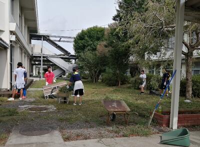 9月2日(土) PTA保体環境委員、職員で校内奉仕活動(グランド等の除草作業)を行いました。