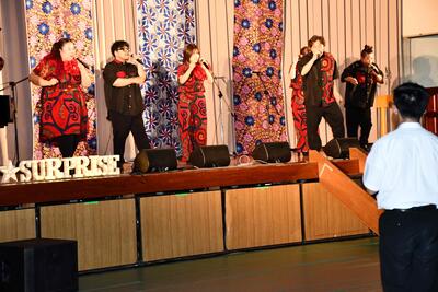 今回はゴスペルの鑑賞でした。福岡在住の6人組コーラスグループTEAM SURPRISE ーチームサプライズー による公演を楽しみました。前日から入念に準備をしていただいて、迫力ある、そして美しい歌声を聴くことができました。途中、ゴスペルをレクチャーしてもらいながら生徒が一緒に歌う場面もありました。あっという間の2時間でした。最後は全校生徒と一緒に集合写真を撮り、いい思い出になりました。TEAM SURPRISEの皆さん本日は芸術に触れる貴重な時間を提供していただき、ありがとうございました。