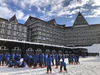 今日の天気は雲がかかって雪か小雨が降るような天気でした。そのためスキー場の写真は白黒のように見えます。午前中の研修開始から早速リフトに乗って初級者コースを滑り始める班もありました。昨日ホテルに到着した福岡県の高校2校も加わり、途中からリフトが混雑しました。午後からは全ての班がリフトに乗って斜面を下りながらスキーを楽しんでいました。2日間で合計約7時間のスキー研修でかなり滑れるようになっていました。インストラクターの皆様ありがとうございました。体調不良者もなく、最後の閉校式に全員そろって参加することができました。明日は1番楽しみにしているディズニーランドです。今日の疲れをしっかり取って、万全の状態で明日を迎えましょう。