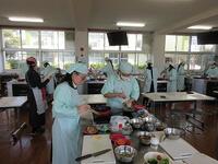 今回のテーマは17歳女子の通学用弁当で、指定調理は「煮物」、指定材料は「ほうれん草」でした。制限時間50分の中で、事前に自分でたてた献立に従って1人分を1人で調理しました。緊張しながらも、手際よくお弁当をつくっていきました。