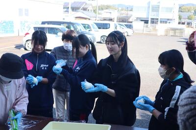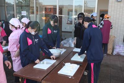 以上のことを経験し、最後は炊き出しで作った豚汁とおにぎりをみんなで美味しくいただきました。参加した生徒は防災の知識を身に付けただけではありませんでした。やってみて楽しかったという感想も聞こえてきました。