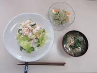 都城市食生活改善推進委員の皆様と一緒に、コーンとツナのサラダ混ぜご飯、アボマヨ風サラダ、厚揚げと大根みそ汁の3品を調理しました。