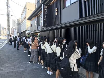 お土産をたくさん持って集合した時には外は暗く、ライトアップされた京都タワーが温かく迎えてくれました。