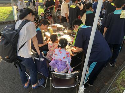8月25日(日)に高城観音池公園で開催された「観音池まつり」に本校生徒22名がボランティアとして参加しました。高城地区まちづくり委員会の皆さんに助けていただいて、初めての取り組みにチャレンジすることができました。