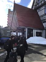 ホテル到着後、予定通り初日のスキー研修を行うことができました。最初はスキー靴を履くのにも苦労していましたが、生徒の上達は速いです。わずか2時間でゆるい傾斜を滑っていた人もいました。「楽しいー」という声がたくさん聞こえてきました。