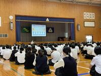 人材育成部 中宮 清孝 氏を講師として招き、情報モラル教育を行いました。スマートフォン・携帯電話の利用方法やSNS利用時の危険性について講話をいただきました。今後の学校生活に役立ててください。