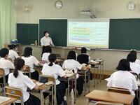 本校家庭クラブは、SDGsをテーマに取組をすすめています。その取組の一つとして、地元都城市の在来種大豆「みやだいず」を使った商品開発の研究をしています。今回は、「まずはみやだいずについて知ろう!」ということで、吉田醸造 ケンコー食品工業株式会社の井ノ上様にお越しいただき、「地域食材を活用した商品開発」というテーマで講話をしていただきました。