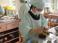 今回のテーマは17歳女子の通学用弁当で、指定調理は「煮物」、指定材料は「ほうれん草」でした。制限時間50分の中で、事前に自分でたてた献立に従って1人分を1人で調理しました。緊張しながらも、手際よくお弁当をつくっていきました。