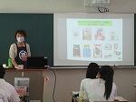 生活産業基礎の授業の一環として、 ケンコー食品工業株式会社の井ノ上亜里沙氏をお招きし、「地域食材を活用した商品開発~地域内六次産業化とは~」というテーマで講話をしていただきました。地域活性化にむけた商品開発の取り組みや身近な地域食材について知る機会となりました。また、地域のために職業を超えて活動する姿から、働くことの意義や役割について考え、職業観や勤労観の育成にもつなげることができました。