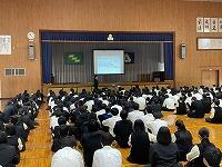人材育成部 中宮 清孝 氏を講師として招き、情報モラル教育を行いました。スマートフォン・携帯電話の利用方法やSNS利用時の危険性について講話をいただきました。今後の学校生活に役立ててください。