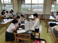 生活文化科では、全員が家庭科技術検定試験に挑戦します。この検定は4級から順に知識・技術を身につけながら習得していきます。1年生が最初に挑戦するのが4級です。並縫いから半返し縫い、まつり縫いなどの手縫いの基本や野菜の切り方や計量など、専門の基礎基本につながる知識・技術がどれだけ定着したかを見る検定です。みんな緊張しながらも真剣な表情で頑張っていました。祈!全員合格!