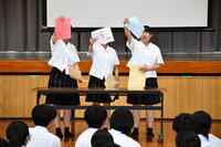6/17(月)に全校生徒を対象とした健康教室が行われました。熱いからといって水分だけをとるのではなく、塩分も必要だと学びましたね。ポカリスエットなどのスポーツドリンクもうまく活用し、これからの暑い季節、熱中症に気をつけたいですね。