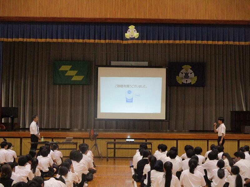 6月19日(木)に健康教室が開催され、熱中症対策に関する講話が行われました。講師として大塚製薬の坂元様より熱中症を予防する上で「栄養」「睡眠」「運動」がいかに重要かを具体的でわかりやすくお話いただきました。また、データに基づき朝食を欠食すると学力や体力の低下に繋がる傾向が見られるといった生活習慣が心身に与える影響についても説明があり、生徒たちは日々の生活を見直すきっかけとなりました。