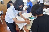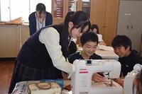 生活文化科3年生ファッション造形選択生が高城小学校6年生の家庭科の授業サポートをしました。この取り組みは今年で12年目になります。小学生は慣れないミシン縫いにドキドキのようでしたが、高校生に教わりながら、ナップサックを完成させることができました。小学生からは「難しかったけれど、優しく教えてもらって楽しかった!」、「完成してうれしい!」との声が聞かれました。高校生にとっても貴重な体験となりました。