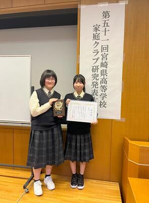 11/13(火)宮崎県立図書館で行われた宮崎県高等学校家庭クラブ研究発表大会に、小林・都城地区を代表し、生活文化科2年の田中来夢さん、吉田安澄さんが出場しました。