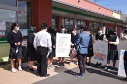 本校家庭クラブでは、今年の活動テーマを「SDGs」としてさまざまな取り組みを進めています。今回は、カンコー学生服高城工場と連携して制作したエコバッグを活用し、地域の皆様にもSDGsに関心をもってもらおうと、エコバッグキャンペーンを実施しました。