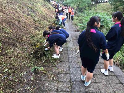 10月20日、「いきいき大淀川クリーン大作戦」ボランティアが行われ、本校からも14名の生徒が参加しました。神柱公園周辺の川沿いをきれいにしました。刈られた草を運んだり、草を引っこ抜いたりして、スッキリとした土手になりました。他校の生徒も含め多くの高校生が参加してくれたと喜ばれました。