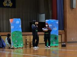 各グループが趣向を凝らしてゲームやお芝居の企画・運営をしました。当日はゲームをわかりやすく説明するために、お手本を示したり、声援を送って園児とのふれあいを楽しみました。