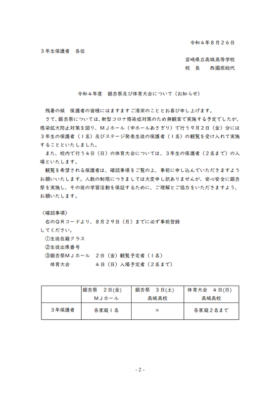 令和4年度 銀杏祭及び体育大会について(お知らせ)