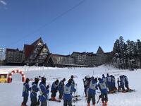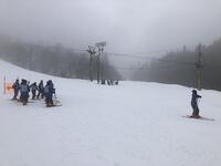 今日の天気は雲がかかって雪か小雨が降るような天気でした。そのためスキー場の写真は白黒のように見えます。午前中の研修開始から早速リフトに乗って初級者コースを滑り始める班もありました。昨日ホテルに到着した福岡県の高校2校も加わり、途中からリフトが混雑しました。午後からは全ての班がリフトに乗って斜面を下りながらスキーを楽しんでいました。2日間で合計約7時間のスキー研修でかなり滑れるようになっていました。インストラクターの皆様ありがとうございました。体調不良者もなく、最後の閉校式に全員そろって参加することができました。明日は1番楽しみにしているディズニーランドです。今日の疲れをしっかり取って、万全の状態で明日を迎えましょう。