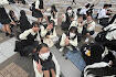 火災を想定した防災訓練を行いました。消火班の先生方は消火器を持って発火地点に向かい、その後、消火栓からホースを伸ばして放水も行いました。自分の命は自分で守るという意識を再確認する機会となりました。