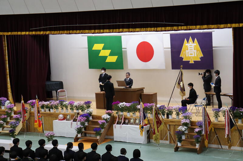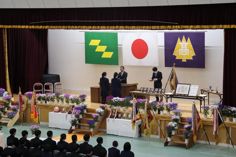 担任から一人ずつの呼名と返事の後、各クラスの代表生徒が黒木篤校長より卒業証書を授与されました。