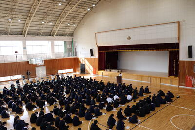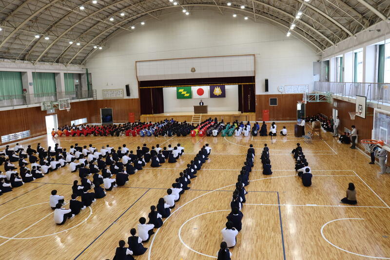 終業式では、校長先生から1学期の学びや活動を振り返り、生徒の皆さんの努力を称える言葉とともに、夏休み中の安全と充実した時間の過ごし方についてのお話がありました。