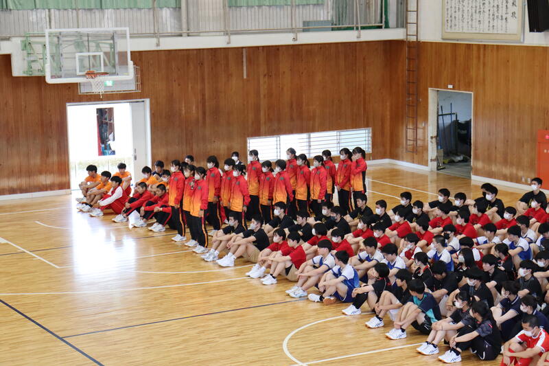 7月10日(木)、駅伝部・女子駅伝部・女子バスケットボール部・ウェイトリフティング部の全国大会出場を祝う壮行式を開催しました。