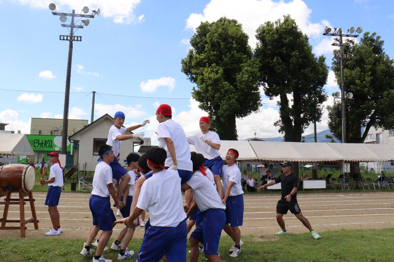 赤団・青団に分かれ、騎馬戦や綱取り、団対抗リレーやダンス、演舞など、たくさんの競技で大きな盛り上がりを見せました。