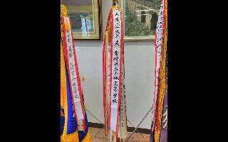 字を書いて、幟が出来、昨日、美術部員が、正面玄関周辺に