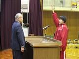 最後に交通委員長の田爪康喜さんが、「これから雨が多くなるのでスピードの出し過ぎに気をつけるなど、今日学んだことを忘れずに交通安全をこころがけたい。」と感想とお礼を述べました。