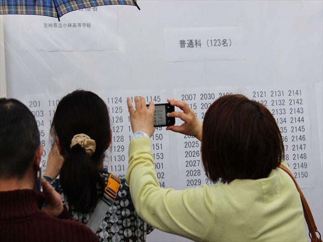 午前9時に小林高校内で、合格者番号が表示され、歓喜の声がわきあがりました。