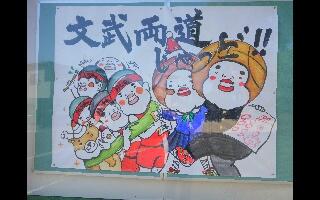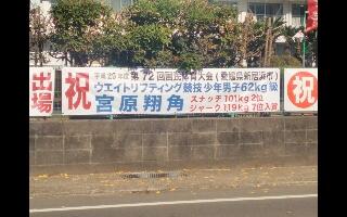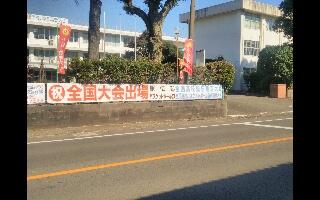 正門横には、横断幕を掲げています。精一杯頑張って欲しいと思います。