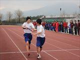 クラス対抗駅伝もあり、走者も応援者も熱が入りました。女子の駅伝チームに職員も選手チームを結成したすきをつなぎました。