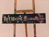 「8時だよ!全員集合!」を模倣してみたのですがどれだけの生徒が昭和の娯楽番組を知っているのか不安な中、描いてみました。掲示する前に、書道部の生徒の反応を確かめると「知ってます!」と笑ってくれました。