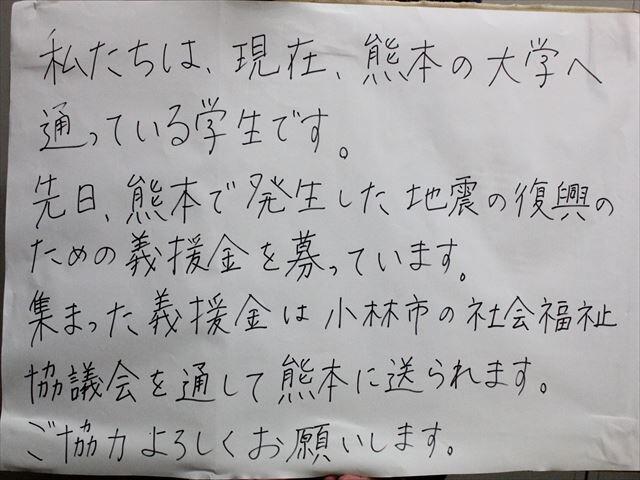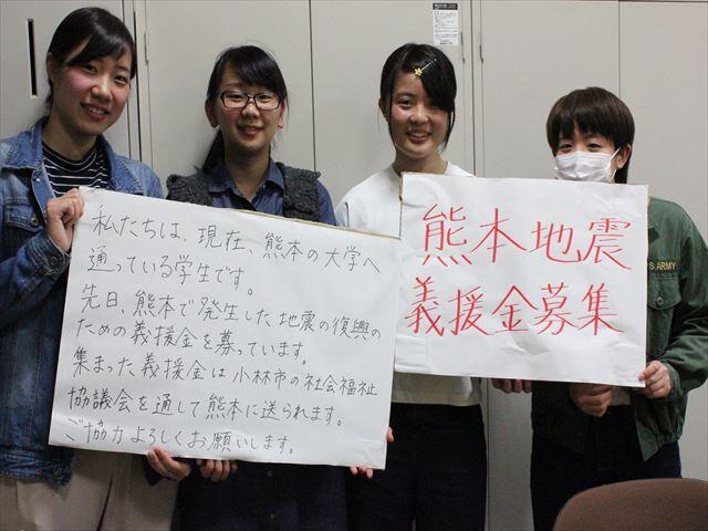 小林高校卒業生(熊本の大学に通う学生)が、熊本の被災者のために自分たちになにかできないかと、小林高校に集まり募金活動を計画していました。