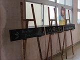 新入生を歓迎して美術部・書道部がチョークアートを正門前に描きました。