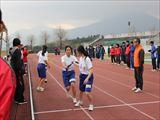 クラス対抗駅伝もあり、走者も応援者も熱が入りました。女子の駅伝チームに職員も選手チームを結成したすきをつなぎました。